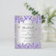 En modern bröllopsinbjudan till snyggten. En faux silver tittar bakgrund med violett faux glitter, sparkler, vattenfärgade lavingerblommigtar, blommor och bin. Anpassa och lägg till namn och detaljer. 1 lakan = 1 inbjudan tryckt kant till kant.