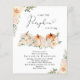 En elegant budgetvänlig babyduschinbjudan med "en söt liten pumpa är på väg" i modern typografi och ett snyggt med en hjärtsvasch och vattenfärger av pastellernas orange, terracotta och krämpumpor och blommigt buketter. Ange baby gender om så önskas (t.ex. "är på väg").