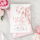 Gratulera till glädjen i nyfödd bebis med Rosa Bow Blommigt Baby Shower-inbjudan, en perfekt blandning av elegans och charm. Den här designen har en stor rosa som är försedd med delikat rosa blommigt-accenter och skapar ett vismiskt och kokvetteestetiskt. Vattenfärgen vilda blommor tillför en aning magi under våren, medan de mjuka tonerna utstrålar feminitet och nåd. Perfekt för en temadusch "Baby in Bloom". Den här inbjudan fångar skönheten hos ett vår eller sommar firande för ett flicka. Med sin harmoniska blandning av detaljinformation om blommigten och en elegant båge är denna utformning idealisk för dem som söker ett visemiskt men sofistikerat sätt att tillkännage sin speciella dag. Helt anpassade, det är ett underbart sätt att ange tonen för en hjärtfull och minnesvärd dusch.