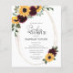 Solrossen och Ro Rustic Greenery Inbjudningskort för möhippan har solrosfärgade blommigtar och burgundi ro med sage grey accents. Det är perfekt för en sommar- eller fall-babydusch.