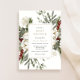 Vinter Grey och Blommigt Baby Shower-inbjudan med en ram av vattenfärgsevergreener och snöflingor. Anpassa med din information för att mamman ska bli. Klicka på "klicka för att anpassa ytterligare" om du vill ändra teckensnittet stil, storlek eller färg.