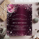 För en elegant 40:e (eller någon ålder) födelsedagsfest. En burgundisk faux metallisk tittar bakgrund färg. Dekoreras med damm och blommigtar från rosa faux glitter. Anpassa och lägg till information om namn, ålder och party. Namn är skrivet med ett handskript i stil