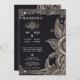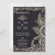 Den här infångande bröllopsinbjudan har en svart rik, perfekt kontrasterad av ornatliknande, snöre-liknande guldfärgade skönhetsfläckar. Gräns är förtrollat med blommigt och mönster, och skapar ett lyxigt ram som utstrålar elegans och sofistikering. På högerna uppmärksammar en stor visning med lagrade petaler och snurrande löv detaljerna i bran och det konstnärliga djupet. I mitten utstrålar en känslig blommigt en charm, som balanserar det krångliga gräns-arbetet på ett perfekt sätt. Den här designen förkroppsligar tidlös romantik och opulens, skapar den perfekt för ett bröllop firande som är fyllt av nåd och storhet.