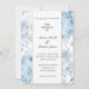 Den här bröllopsinbjudan visas i en klassisk layout med en vacker, blå blommigt utskriven med ett pappert val för vit projektionsyta. Välj papper. Blå Blommigt Skriv ut Grått Skriv ut text Anpassa det här objektet genom att ändra exempeltexten och i stället ange informationen i det. Bild från lagrar. freepik.com
