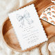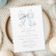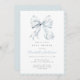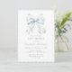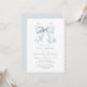 Minimal babyduschinbjudan som har en elegant blå båge och bakgrund och skalat kant.