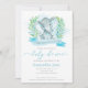 Med en blå vattenfärgselefant och enkel, modern typografi är denna inbjudan perfektens val för en barndusch.