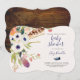 Bekvämt färgade vattenfärger blommor och fjädrar tillägger denna enkla och elegant Förlovning inbjudan till det naturnära paret. Omvänd i mörk.