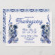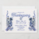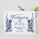 Thanksgivingens inbjudan i delft blue stil med fasaner och solblommor.