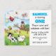 En gårdscen med Cute Animals till inbjudan dina gäster till din lilla födelsedagsfirande. Anpassa enkelt texten på framsidan och baksidan.