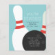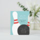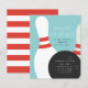 En modern, könsneutral födelsedagsinbjudan med bowlingklot och 2 käglor. Bjud in vänner att fira och spela ett roligt parti bowling för att fira ditt barns födelsedag. Den koordinerade mönstrade baksidan kan tas bort för att ge plats åt ytterligare festinformation som vägbeskrivning.