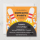 Födelsedagsinbjudan med en bowlingkula som slår ner käglor. Anpassningsbar inbjudan text. För anpassade förfrågningar eller hjälp med anpassning, använd butikens kontaktlänk ovan.