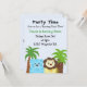 Den mest lejona tigern och den mest accenten i roligtens djungel var födelsedagsinbjudan. Handflatan träd blåser i bakgrunden. Anpassa med all din personliga information efter behov. En inbjudan till djurparker för roligt.