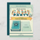 Inbjudan till brädspelsfest med en rolig typografi av "Brädspelsfest". Denna design inkluderar element i blått, gult, rött och orange, en spelbräda i bakgrunden, tärningar, spelpjäser, spelkort och element inspirerade av brädspel. Produkter inkluderar en mall för personlig anpassning.