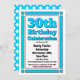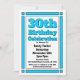 Skicka inbjudningar till ett 30års födelsedag firande med denna inbjudan till Bright Blue 30års födelsedag. Den kan anpassas med din personliga information.