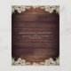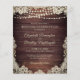 Rustic bröllop firande eller mottagningsinbjudningar tryckta på lättviktiga pappra ideal för konservativets budgetar och leverans till gästerna. Vackert mörk land-trä med ljus och accentuerat med snöre i en elfenbenskräm eller beige färg och elegant-manustypografi. All text är redigerbar för att ändra formuleringen så att den passar dina behov. Kontakta designern via Zazzle-Chattan eller makeitaboutyoustore@gmail.com om du vill att designen ska ändras, på en annan produkt eller samordnande artiklar.