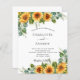En vit bakgrund som dekorerats med solblommor, eukalyptus greenergiy. Anpassa och lägg till information om namn och party.
