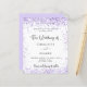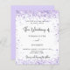 En vit snyggt bakgrund. Dekorerad med violett, lavender färgad faux glitter damm. Anpassa och lägg till namn och information.
