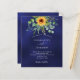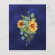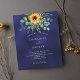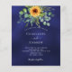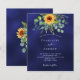 En marin blå bakgrund som dekoreras med solblommor, eucalyptus greenery. Den blå färg är ojämn. Anpassa och lägg till information om namn och party.