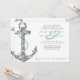 Den här inbjudan till tropisk strandbröllop med chic och snyggt ger en bild av ett ankare och rep av frakt med moderat blek med mönstrat tealblått och skiffer grått färg mot vit bakgrund. En perfekt nautisk plan för alla havsbaserade party eller händelser! Leta i min butik efter andra matchande produkter.