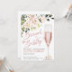 Inbjudningskort för möhippan har blommor av rosa i ro guld, champagneglas och glanssande bokstäver. Den här designen är perfekt för någon som har en brunchdusch i möhippan.