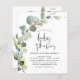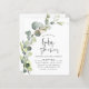 Budgeten Eucalyptus Greenery Succulent Botanical Watercolor Vår Kön Neutral Pojke eller Flicka Baby Shower Inbjudan på vit bakgrund - innehåller vackra och elegant manustypografi med moderna botaniska löv och grön för att speciella Mor ska vara firande.