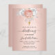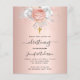 För en elegant, döpning, baptism, firande av flicka. En faux ro guld-metallisk tittar bakgrund. Dekorerad med ro guld och vita blommigtar, rosor och en faux guld kor. Anpassa och lägg till namn om barnet och detaljer.