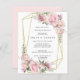 Mjukt rosa ros dekorerar ett tunt guld-geometriskt ram. Löv för delikat grönt läggs till i blommigten för vattenfärg arrangemangt. En pastellrosa sveper över baksidan. Den rosa blommigt bröllop brunch-inbjudan är en del av sommarinsamlingen i Romantik. Den innehåller många DIY bröllop-mallar som gör att du enkelt kan skapa ett vackert inbjudningsset för bröllop brunch och party decor.