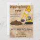 Personlig inbjudan till byggtemafödelsedag med en gul grävmaskin, perfekt för små byggare! Kan anpassas med ditt barns namn, ålder, datum och festdetaljer. Idealisk för en byggtemafest. Du kan skicka dessa inbjudningar digitalt eller skriva ut dem här eller på din favorit tryckort.
