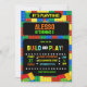 Inbjudan till Byggblocksfest, Mall för digital inbjudan till barnkalas, utskrivbar födelsedagsinbjudan, mall för födelsedagsinbjudan till byggblocksfest, inbjudan till byggblocksfest, byggblocksfest, inbjudan till bygg med klossar