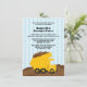 Denna pojkes födelsedagsinbjudan har ett sött byggtema. Längst ner finns en gul dumpbil som transporterar mycket jord. Längst upp och i mitten kan du anpassa all din festinformation. Grafik av babystardesign.com