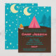 Varje barn älskar äventyr, så bjud in alla hans/hennes vänner för en vild och rolig camping ute på din egen gård, på en närliggande camping eller till och med i ditt vardagsrum för en inomhus-camping. Dessa roliga inbjudningar visar ett tält med en lägereld och massor av stjärnor som lyser upp himlen. Anpassade just för dig, är halva jobbet redan gjort för den där speciella festen. Se också till att ta en titt på alla de roliga accessoarer och festartiklar som finns med detta roliga äventyr!