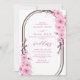 Fira kärlek i blomning med inbjudan till blommarna vår bröllop. Mjuka blommigtar och typografi av rosa anger tonen för en romantisk trädgård eller utomhus bröllop. Perfekt för vårtidstimmar fyllda med naturens skönhet och milda charm.