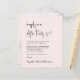 Budgetvänlig inbjudan till ljus rosa bröllopsmottagning som innehåller "Lyckligtvis allt efter Party" i ett modernt chic, din inbjudan i klassiskt serif-typografi och din namn i ett namnteckning skript. På baksidan lägger du till fotot och matar in webbsidan adress i bröllop för att skapa en QR-kod för dina gäster för att söka i OSA online och få ytterligare information.