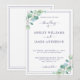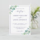 Elegant, modern och enkel bröllopsinbjudan med marinblå handskriven chic med kalligrafi och modern typografi på vit bakgrund och en snyggt med grönt eucalyptus foliage. Lägg bara till dina uppgifter om namn och bröllop. Enbart designad för dig av Lycklig Dolphin Studio. Kontakta oss på happydolphinstudio@outlook.com om du behöver hjälp eller matchande produkter. Vi är lycklig för att hjälpa dig att göra bröllop till den vackraste dagen!