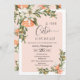 Clementine Little Cutie Baby Shower Bjud Citrus Mated Flickans babyduschinbjudan med två citrus-, blommigt- och bladarrangemang på en delvis rosa bakgrund. Designen har också en rubrikbild för kalligrafi som kan tas bort. Den här designen är perfekt för alla som tittar för en clementinsk liten cutie, den temade flickans inbjudan till babydusch.