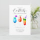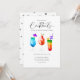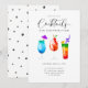 Rolig inbjudan till cocktail- och samtalsfest för en destinationsevenemang med illustration av färgglada tropiska cocktaildrycker.