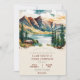 Den här bröllopsinbjudan innehåller bergsbergsgåvan ovanför ett landskap i fantastisk fyllt med träd och gröntar inbyggda i ställe.