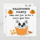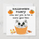 En inbjudan från roligt halloween fest. Bakgrund med vit text i svart brev. Cute cat cupcakein an orange ljner. Anpassa med all din party-information. Underbar för barn party också!