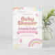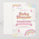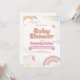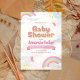 Fira en glatt nystart med den här vackra babyduschinbjudan, designad med pastellregnbågar, fluffa moln och lekfulla fotavtryck från baby. Den mjuka paletten och den visuella designen i färg gör den perfekt för babyduschar i gender-neutralt eller party fyllda med roligt och kärlek. Funktioner: Spelande regnbåge och molngrafik, Rosa och gult med 3D-stil skuggeffekt Framträdande heoree namn och händelseinformation Passar för både utskriven och digital inbjudan Anpassade för datum, tid och plats