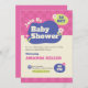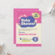 Gratulera till glädjen med en ny ankomst med den här vackra rosa babyduschinbjudan. Med en lekfull layout, fet typsnitt och blommigt accents är det idealiskt för en roligt och välkomsthändelse som hedrar mamma till att bli medlem. Information: Skyvbar rosa- och lila-bakgrundsbild Fet "Babydusch"-titel med dekorativa blommor Anpassade fält för honoree-, datum-, tid- och platsinformation för Perfekt av flicka eller vismliknande babyduschteman Underbar för digital eller tryckt använda
