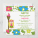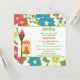 Den här 5,25x5,25-flickans födelsedagsfest inbjudan har en tropisk luau-hula-flickedesign. Bakgrunden är fylld med blommor av rosa, blått och vitt. Det finns en blond hårflicka som står bredvid en tiki torch. Du kan enkelt anpassa party-informationen på högerna.