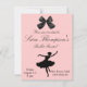 En snygg inbjudan för en snygg dansare. Denna rosa inbjudan har en svart slinga högst upp och en svart siluett av en dansare längst ner. Informationen om uppträdandet är helt anpassningsbar för att passa dina behov.