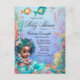 Mörk sjöjungfru babydusch bjuds in med den afrikanska sjöjungfrun baby på en söt under havets bakgrund. Det här söta vykortet för babyduschinbjudan till sjöjungfrun är enkelt att anpassa för din händelse genom att helt enkelt lägga till din händelseinformation. Det går inte att ändra Baby Shower ord.