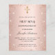 Observera att inbjudan är papper och mycket tunn. Kuvert ingår inte. Om du vill ha mer omfattande inbjudningar (samma design) kan du besöka vår butik. En övertoningsbakgrund för ro guld. Dekorerad med ro guld, rosa faux glitter, gnistor. Anpassa och lägg till namn och detaljer. Namn är skrivet med ett handskript i stil