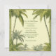 Inbjudan till destinationsbröllop i vintage Handflatan Träd. Perfekt för ett exotiskt bröllop utomlands, den här söten, handflatan träd, inbjudan till bröllopsresa kommer att glädja alla mottagare. 1920-talet, 1930-talet och 1930-talet illustrerar stil i alla gröntens skuggor. Klass, klassisk och traditionell. Texten kan anpassas och redigeras.