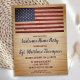 Patriotic Rustic American Flagga-inbjudan till hem. Vänner och familj till era soldater i inbjudan hälsar party välkomna med denna patriotiska militära inbjudan från USA flagga. USA:s amerikanska flagga är konstruerad för att ta fram ett utkast av rostfritt trä.. Denna välkomstinbjudan till militären är också perfekt för militära inbjudningar från pension, militära utplaceringar, soldater som lämnar partiinbjudningar, förändringsplats för personalisering. Anpassa den amerikanska flagga inbjudan med din soldathändelse, namn och party. Se vår samling för att matcha militära välkomstgåvor, party favors och förnödenheter. COPYRIGHT © 2021 Judy Burrows, Black Hund Art - Med alla Höger reserverade. Inbjudan till det militära välkomsthemmet för budget