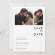 Meddela din speciella dag med vår Modern Photo Bröllop Spara Date-inbjudan. Den här eleganten kombinerar contemporaryns minimalism med en aning kustcharm, perfekt för ett destinationsbröllop. Med ett vackert foto av paret fångar det här dubbla-sidiga kortet romantik och enkelhet. Den svarta och vita snyggten i kombination med modern typografi gör att datumkortet blir ett perfekt val för vinter, rustisk strand eller havskrävande bröllop. Se till att gästerna markerar sina kalendrar med det här trendiget och chic bröllop.