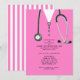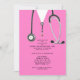 Kreativ doktor studentfest inbjudan med rosa sjukhusbuskar och stetoskop. Redigera text om du vill skapa unika inbjudningar till doktor-partiet eller medicinska skolbetyg.