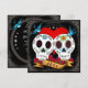 Två små döskallar av lycklig, tatuera bluebirdsen i stil och ro och en banderoll som lyder "Kärlek". Det blir inte mer romantiskt än så här! Anpassa den här inbjudan till temat party eller bröllop i Day of the dead.