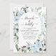 Dusty Blue Blommigt Ro och Eucalyptus Botanical Grey Watercolor Vår eller Summer Bröllop Brunch och BubLY Champagne Inbjudningskort för möhippa - innehåller vackra och elegant manustypografi med moderna tropiska botaniska blommor och grönt för att den speciella bruden ska vara firande.